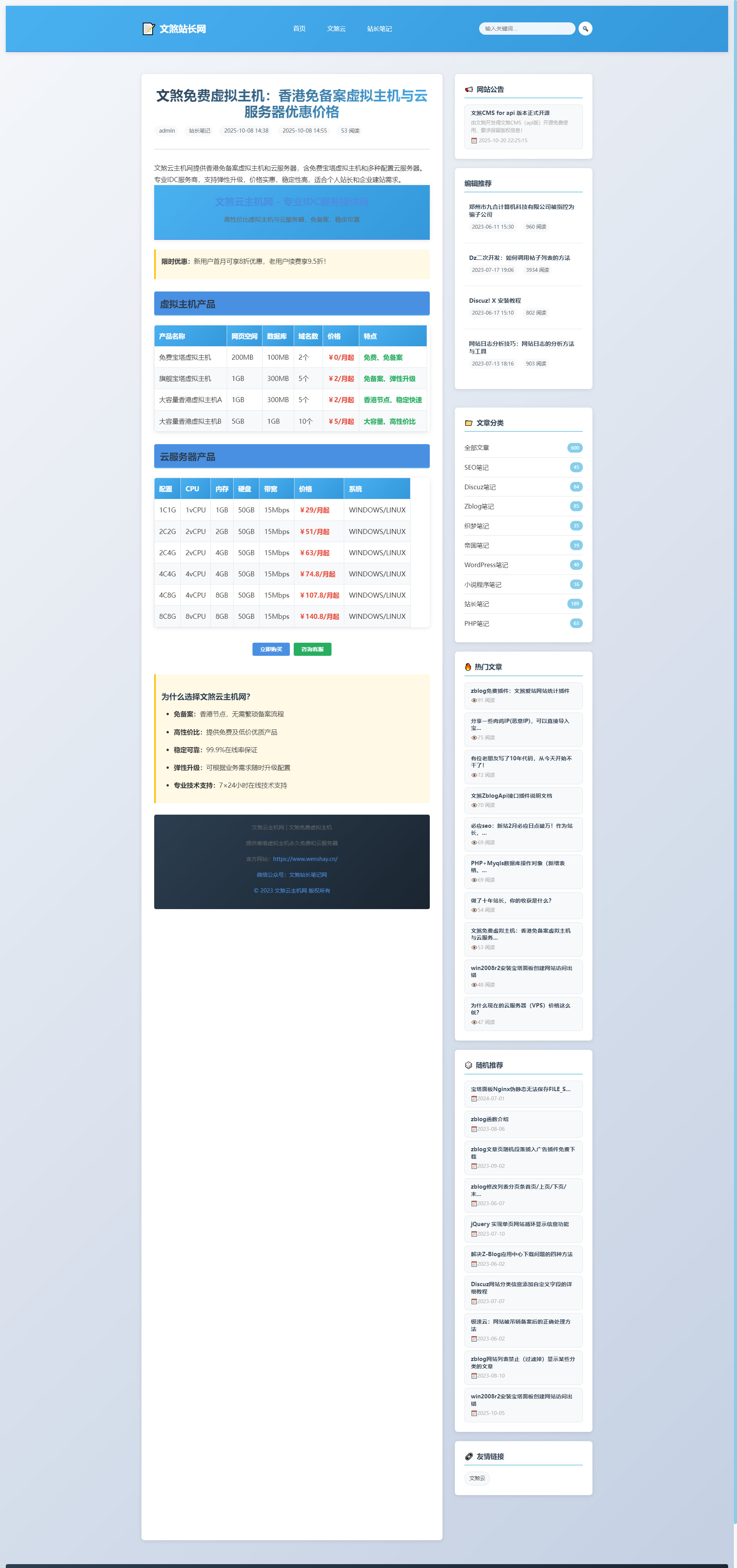 官方提供配套资源支持:免费免备案香港虚拟主机、云服务器(20元/月起)、技术文档(通过“文煞站长笔记网”获取)。