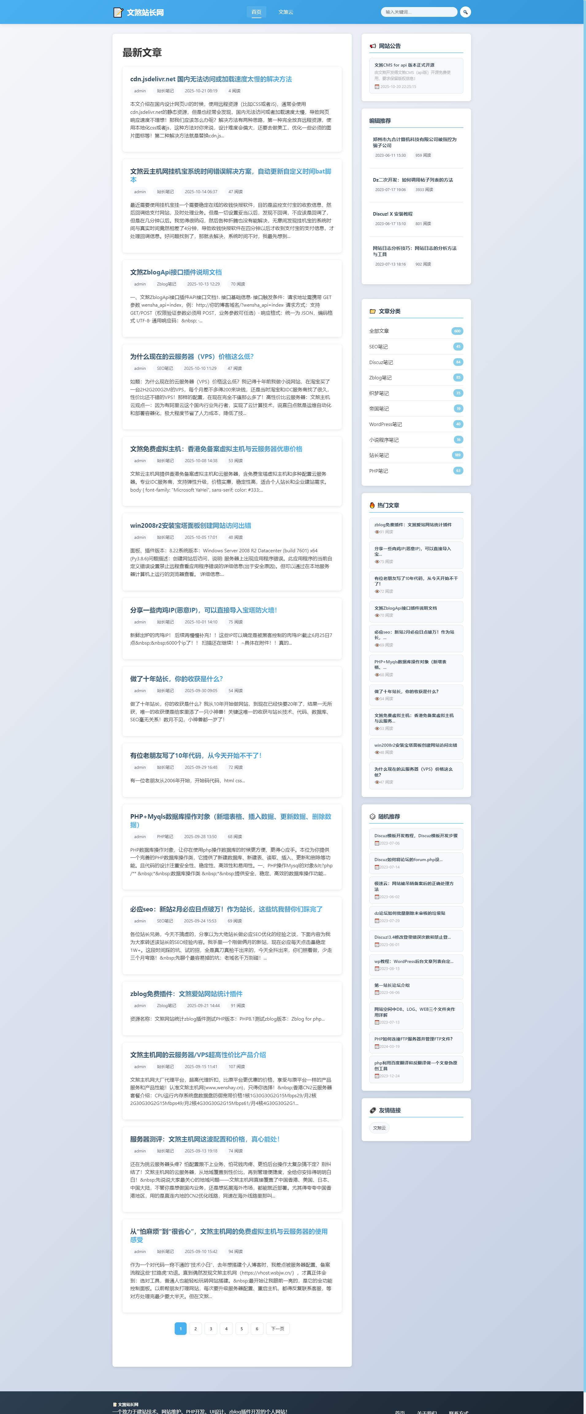 智能缓存策略:针对不同数据类型设置差异化缓存时间(列表数据300秒、随机文章10秒、统计数据3600秒),支持GZIP压缩缓存,减少服务器负载与页面加载时间;